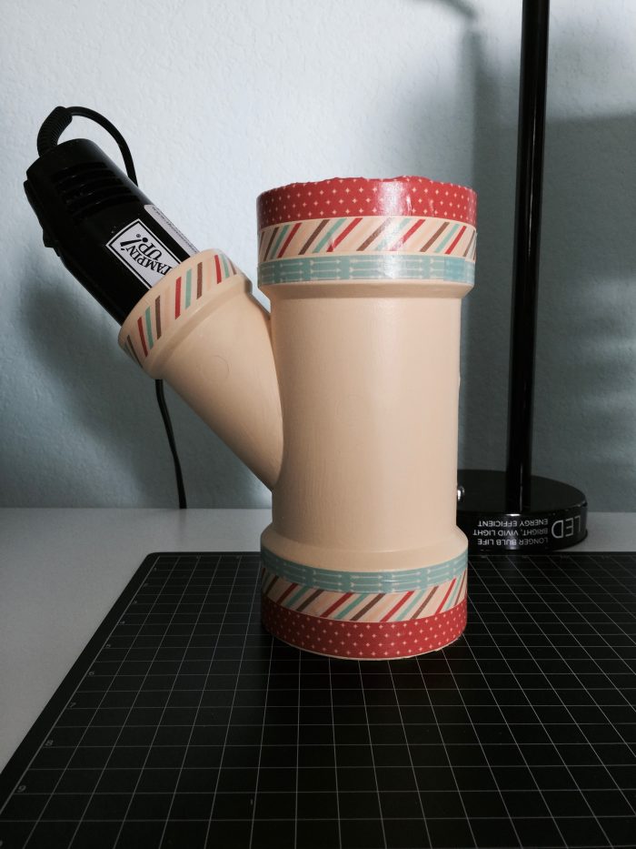 $2.49 PVC pipe from Home Depot, painted and washi tape. Perfect embossing gun holder