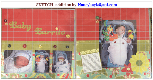 Creative Idea Shares – Scrapbook Samples ~ Scrap 101: Changing text and digital paper colors, Baby Burrito layout