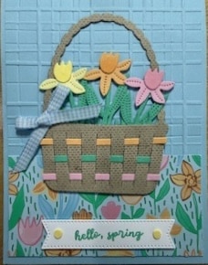 Easter Basket created by Carol Siers for the January – April 2026 New Catalog and 2026 January Online Exclusives Stamp Set Set Swap Stamp Set: Easter Basket, Lasting Linen; Ink: Lemon Lolly, Peach Pie, Pretty in Pink, Shy Shamrock; Cardstock: Basic White, Balmy Blue, Crumb Cake, Lemon Lolly, Peach Pie, Pretty in Pink, Shy Shamrock; Accessories: Easter Joy Specialty Designer Series Paper, Easter Basket & Stylish Shapes Dies, Forever Plaid 3D Embossing Folder, Blending Brushes, Easter Assortment Embellishments, Balmy Blue Gingham Ribbon, Dimensionals