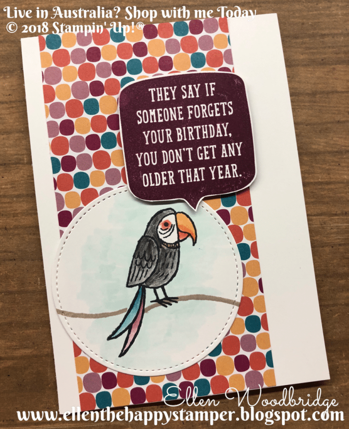Ellen Woodbridge Independent Stampin’ Up!® Demonstrator – Central Coast NSW Australia: Bird Banter, Birthday Wit with Tutti-Frutti Paper Birthday Card