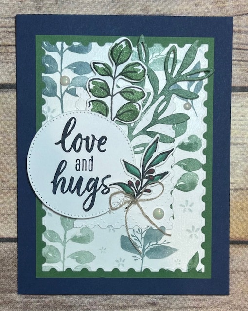 Greenery Lane created by Bobbie Ganley for the January – April 2026 New Catalog and January 2026 Online Exclusives Stamp Set Swap Stamp Set: Greenery Lane Bundle; Ink: Night of Navy, Garden Green; Cardstock: Night of Navy, Garden Green, Basic White; Accessories: Stylish Shapes Dies, Linen Thread, Moody Palette Dots, Greenery Lane Washi Tape; Perennial Postage Dies, Cherry Cobbler & Shaded Spruce Stampin’ Blends, Stampin’ Dimensionals