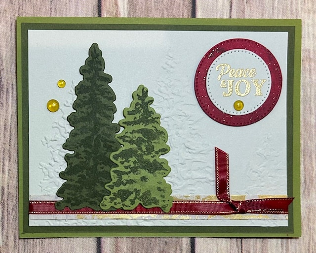 Peaceful Evergreens created by Carol Siers for the 2024 Sept – Dec Mini Catalog Card Swap