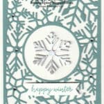 Stamp Set: Snowflake KissesCardstock: Thick Basic White, Lost Lagoon, Basic White, Silver FoilInk: Lost LagoonOther: Stampin’ Cut & Emboss Machine, Snowflakes Kisses Dies, Three Banner Punch, Basic Rhinestone Jewels, Multipurpose Liquid Glue, Mini Glue Dots,