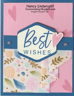 Stamp Set: With You in MindCardstock: Blueberry Bushel, Very Vanilla, Pretty in Pink, Wildflower Birthday Specialty DSPInk: Pretty in Pink, Blueberry BushelOther: Paper Trimmer, Scoring Tool, Heartfelt Hexagon Punch, Multipurpose Glue, Stampin’ Dimensionals, Wink of Stella, Iridescent Foil Gems