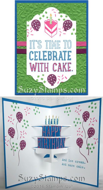 Stampin’ Up! Cards – 2016-02 Class – Party With Cake and Party Wishes stamp sets, Party Pop-Up Thinlits Dies, Lots of Labels Framelits Dies, Party … | Pinteres…